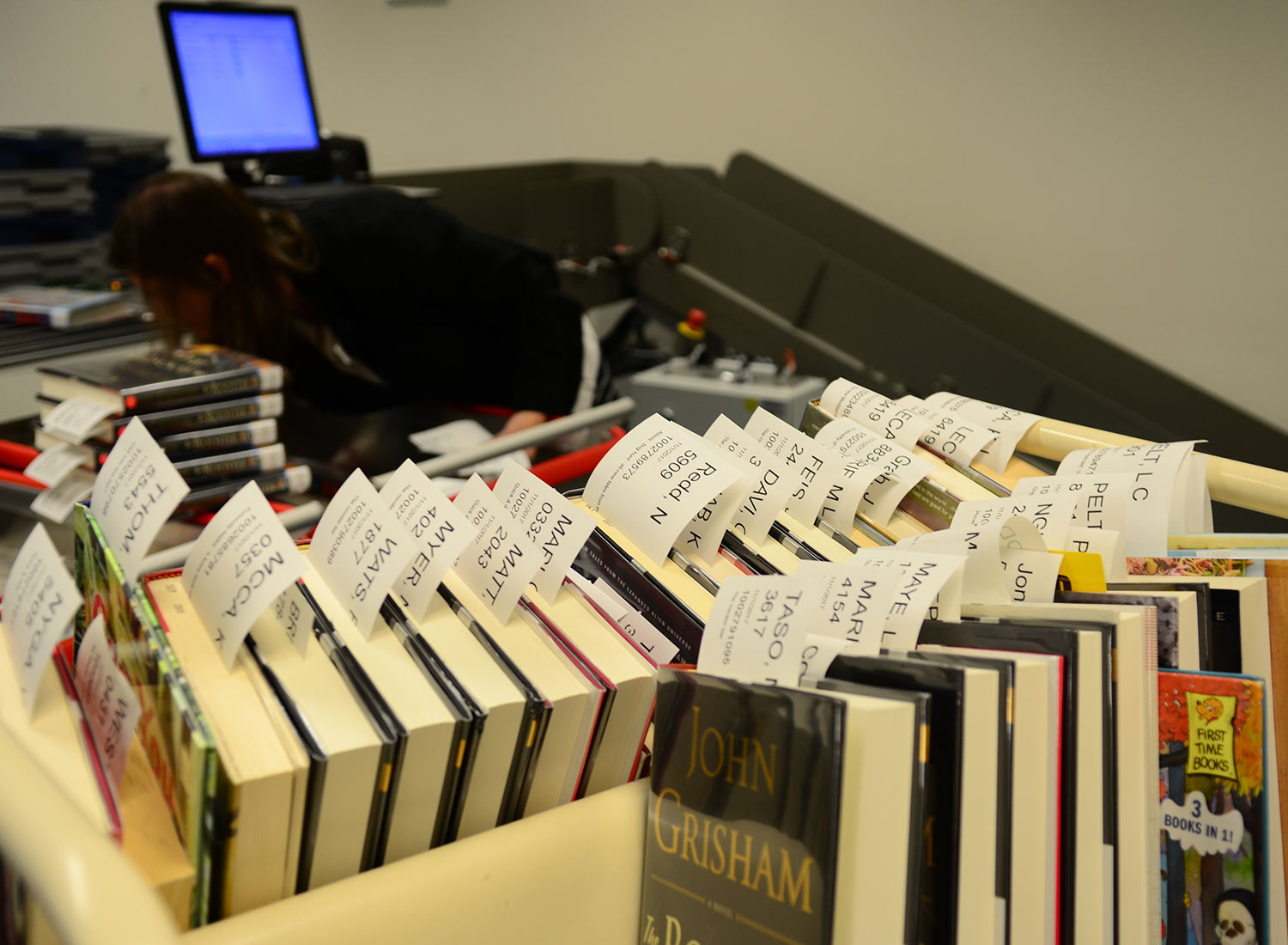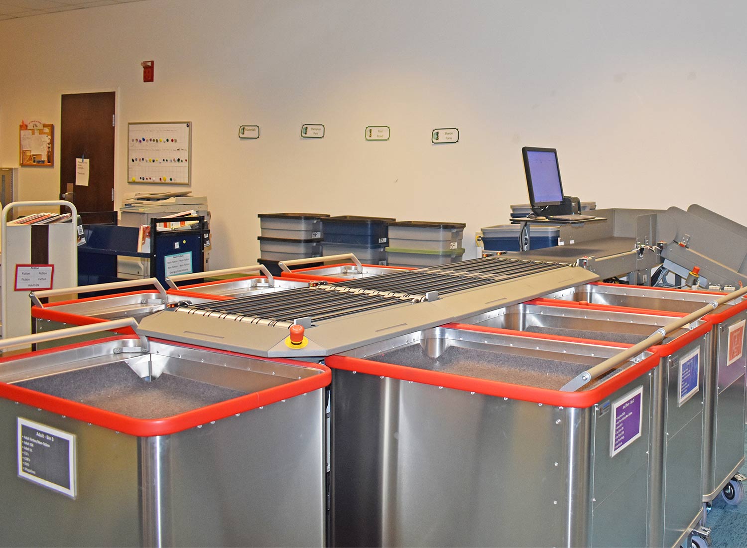 “Most of our holds come from other branches via courier,” Barfield says. “Processing those used to be a two-person job with one person feeding materials into the induction unit and another sitting by the printer matching receipts with items. Now it can be handled by just one staff member by simply unloading the courier bin onto the bulkSeparator belt. The process is so quick, it’s usually the staff falling behind, not the sorter – a great problem to have.”